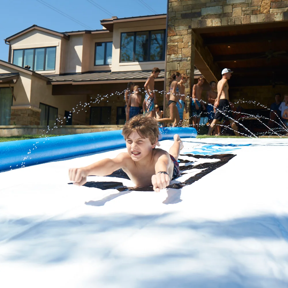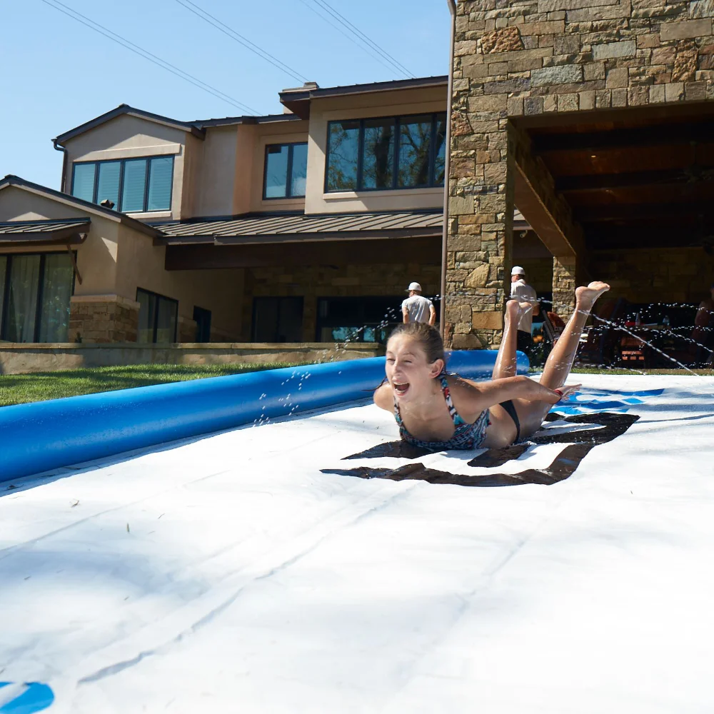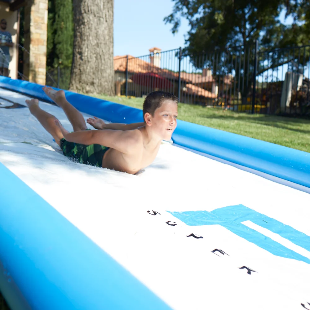 The FunAir Super Sweet Slide® is a high-quality, commercial-grade lawn slide measuring 25 feet by 6 feet. Perfect for summer fun, you can connect multiple Super Sweet Slides to create the ultimate slip and slide experience.